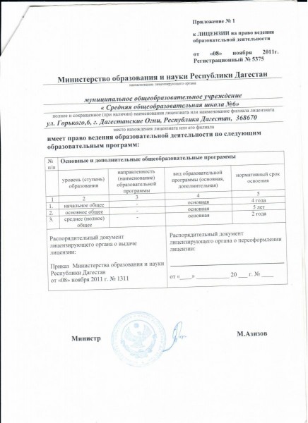 | Адрес местонахождения образовательной организации* | 368670, Республика Дагестан, г.Дагестанские Огни, ул.М.Горького, д.55 |